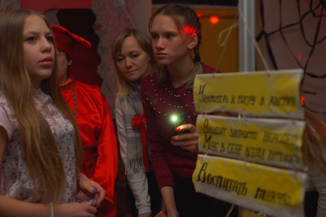 Знаете ли вы украинскую ночь? О, вы не знаете украинской ночи! Всмотритесь в нее. С середины неба глядит месяц. Необъятный небесный свод раздался, раздвинулся еще необъятнее! Божественная ночь! Очаровательная ночь! В Диканьке никто не слышал, как Черт украл Вифлеемскую звезду. Но какая же была причина решиться Черту на такое беззаконное дело? А вот какая! Украв звезду, Хутор погрузился во мрак и теперь без неё не наступит Новый год. Участникам квеста в Центральной городской библиотеке предстояло побывать на Хуторе Диканька и отыскать атрибуты ярмарки на разных площадках квеста: Невский проспект, Заколдованное место, Хата Солохи.