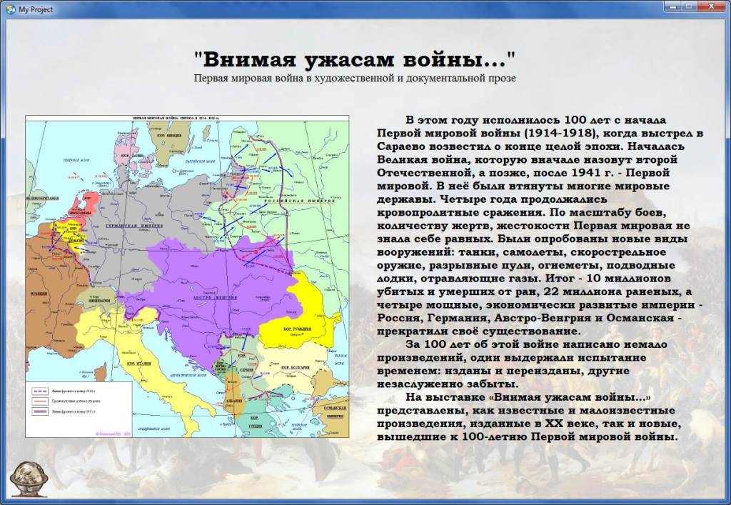 Разрешите представить Вам книжную выставку "Внимая ужасам войны...", посвященную Первой мировой войне.