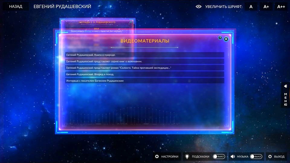 Так же в ресурсе представлены: фотогалерея, творческие достижения писателя и видеосюжеты, где Евгений Всеволодович рассказывает о своей жизни, о книгах и планах на будущее. Подробнее познакомиться с творчеством автора поможет раздел «Лучшие книги Е. В. Рудашевского».