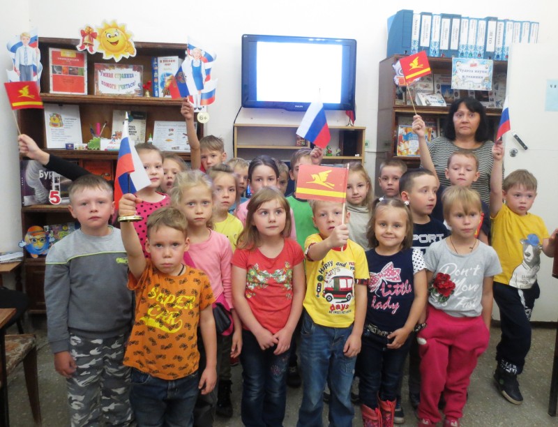 20 и 22 августа, в детской библиотеке №10 состоялась познавательно-развлекательная программа «Какого цвета Родина?», посвященная дню Российского флага. Проведена она для дошкольников МБДОУ №58 и 65. Ведущая рассказала детям историю возникновения флага, особый акцент, сделав на истории появления Российского флага. Дети узнали о символическом значении цветов на флаге, а прослушав интересную историю про снежинку, синее море и солнечный рассвет, выучили слово, которое помогает правильно запомнить расположение полос – БЕСИК. Затем была проведена игра на внимание «Узнай флаг России», а также игры «Выложи Российский флаг» и «Пронеси флаг сквозь преграды». В заключение ребята просмотрели книги, посвященные российской символике.