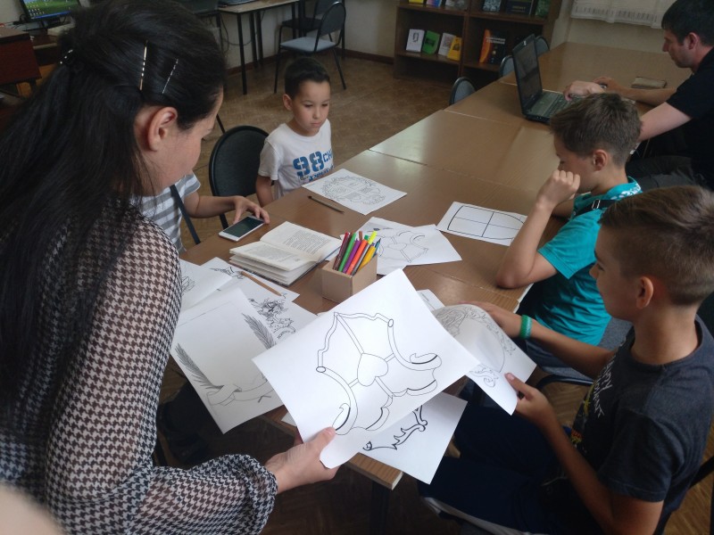 Желающие могли стать участниками мастер-класса «Рисуем герб семьи», посвященный празднованию Дня Государственного флага Российской Федерации. Участники мероприятия вспомнили о значении государственного триколора и герба РФ. Затем было предложено самостоятельно нарисовать герб своей семьи, учитывая индивидуальный набор качеств каждого члена, предметы, связывающие с профессией или хобби. При помощи шаблонов и цветных карандашей, которые заранее приготовили библиотекари, учащиеся легко справились с заданием, продемонстрировав готовую работу остальным, и пояснив, что символизирует каждый рисунок. В завершении мастер-класса все получили в подарок небольшие памятные сувениры.