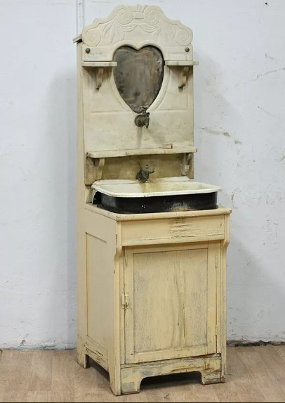 Сто лет назад, когда творил Чуковский, мойдодыры были во многих домах. Это очень функциональный предмет – тумба плюс раковина (или таз, заменяющий её), а также резервуар для воды. Нередко – с зеркалом, удобными местами под гигиенические принадлежности, полотенца. Такие конструкции до сих пор можно встретить на старых дачах, где нет водопровода.