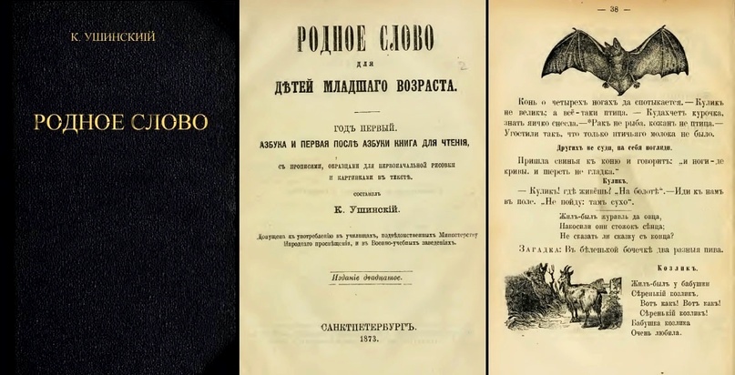 Впервые издана в 1864 году. В качестве первых текстов для чтения Ушинский использует не только молитвы, но и фольклорный материал, который автор переработал на "язык, понятный детям": песни, сказки, загадки, пословицы, а также собственноручно написанные тексты.