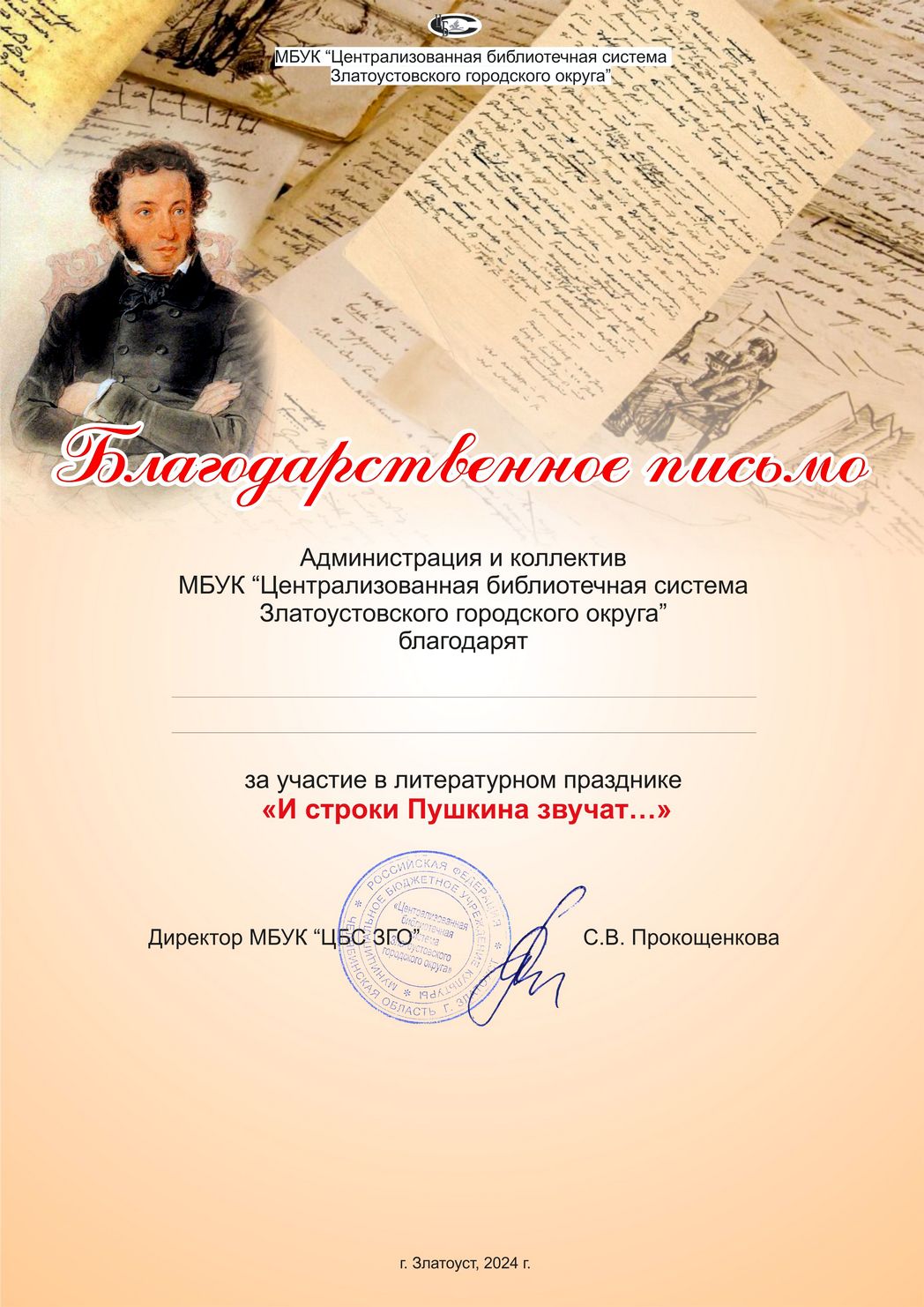 Благодарственное письмо