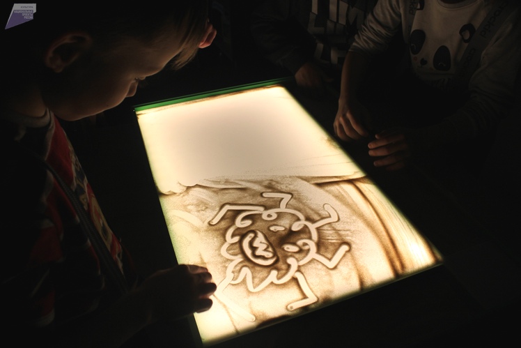 Каждую среду в руках детей песок становится волшебным. Например, к юбилею Корнея Чуковского ребята не просто вспомнили стихи любимого автора, но и на занятиях по рисованию песком на арт-столе изобразили совсем не страшную, а скорее забавную Бяку-Закаляку Кусачую.