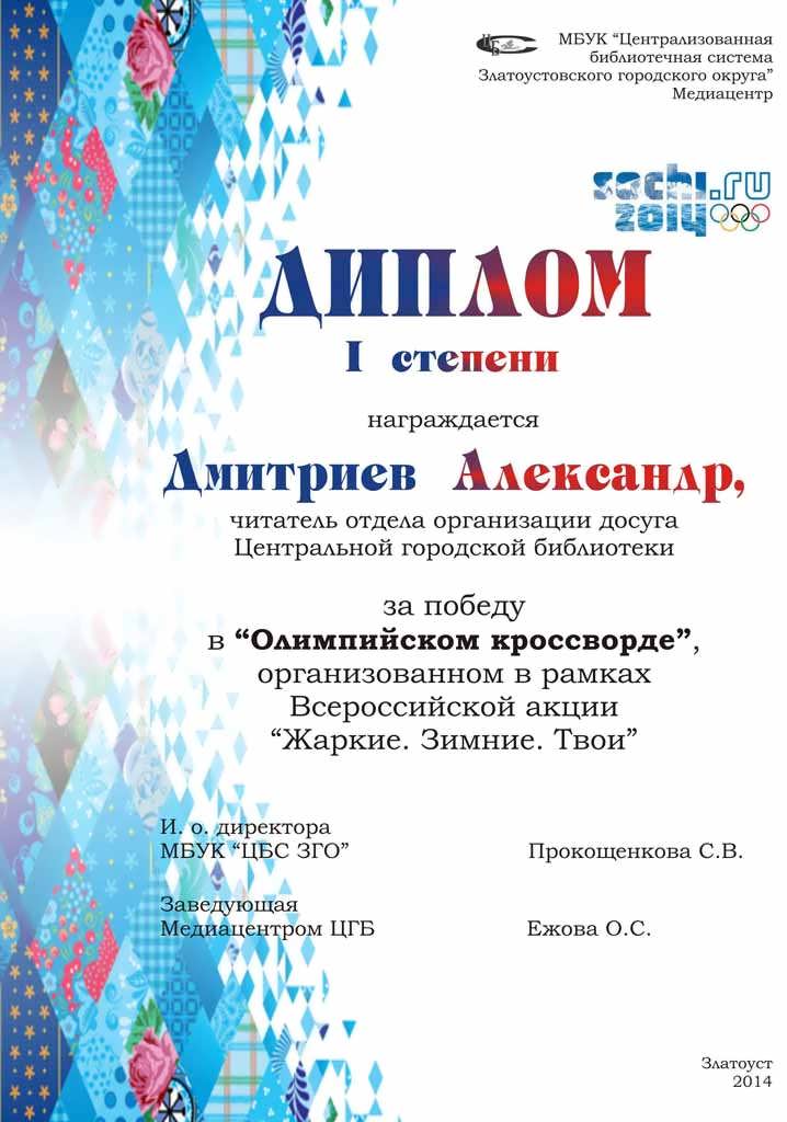 Библиотечный «Олимпийский Комитет» имеет честь огласить