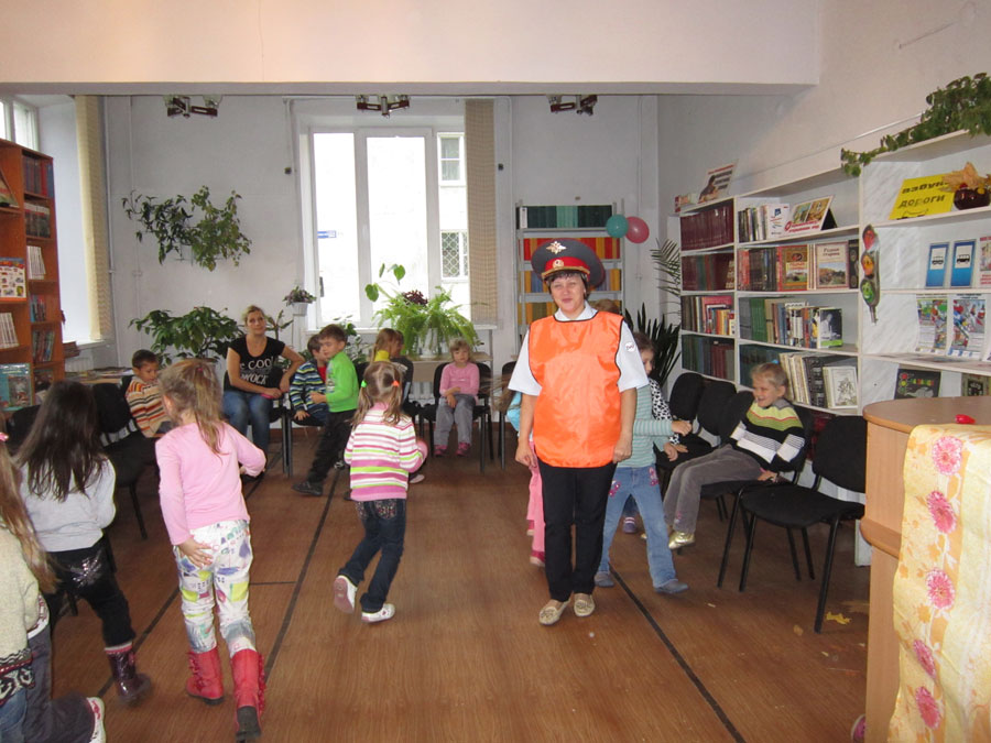 «Сотрудник патрульно-постовой службы» (библиотекарь) поиграл с ребятами в различные игры: «Угадай транспорт», «Мы водители, мы пешеходы» (игра на внимание сигналов светофора).