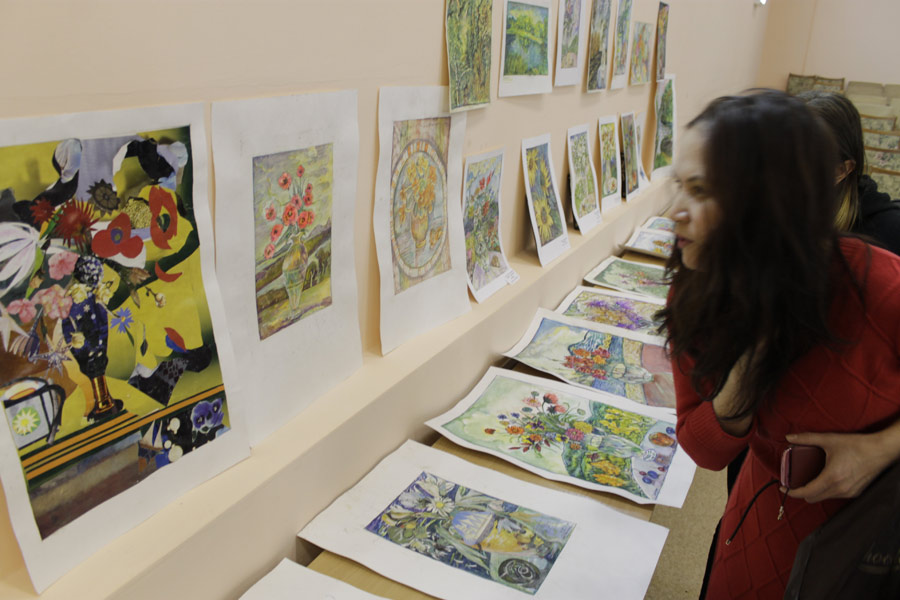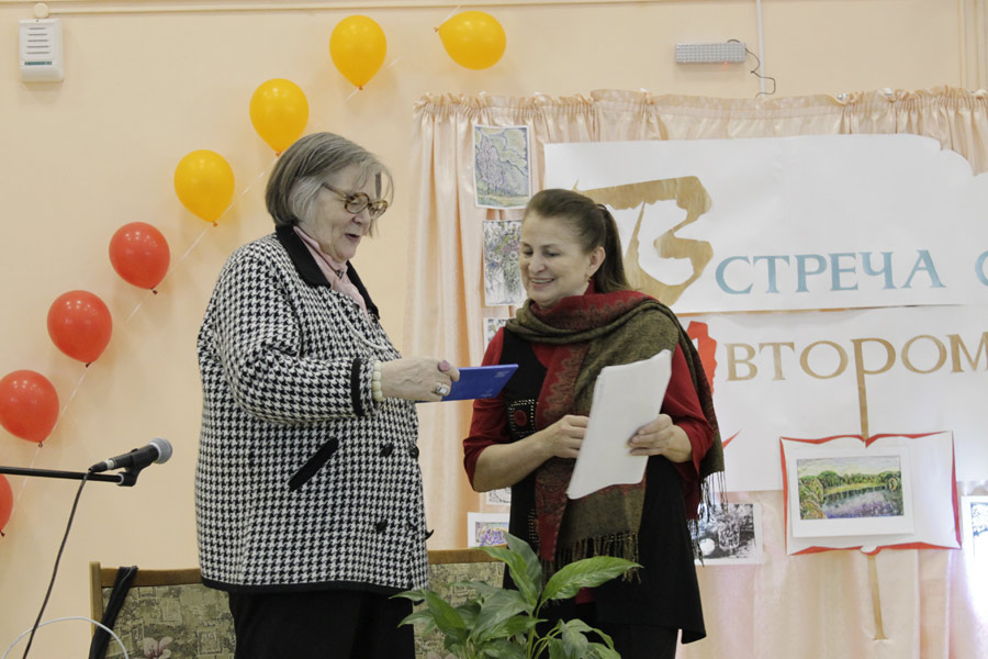 Во время встречи на экране демонстрировалась презентация, содержащая фотографии из личного архива С.Л. Соложенкиной. В зале экспонировалась выставка картин поэтессы.