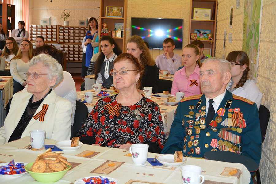 23 апреля в Центральной городской библиотеке состоялся праздник чествования ветеранов Великой Отечественной войны и тружеников тыла, организованный городским Советом ветеранов и сотрудниками библиотеки. Гостями праздника стали ветераны - Авдеев Ефим Федорович, Иванова Римма Борисовна, Матюшина Раиса Семеновна; труженики тыла - Кукин Иван Алексеевич, Толкачева Римма Ивановна, Дунаева Александра Петровна, Мурдасова Антонина Ивановна; дети военных лет - Белюшина Наталья Николаевна, Александрова Руфина Владиславовна; старшеклассники школы №35.