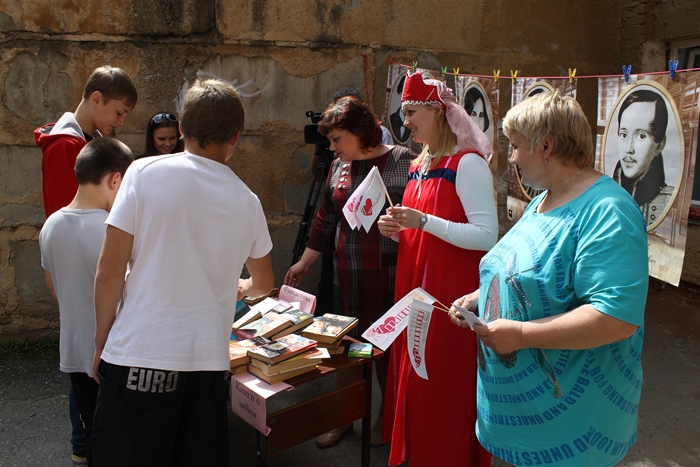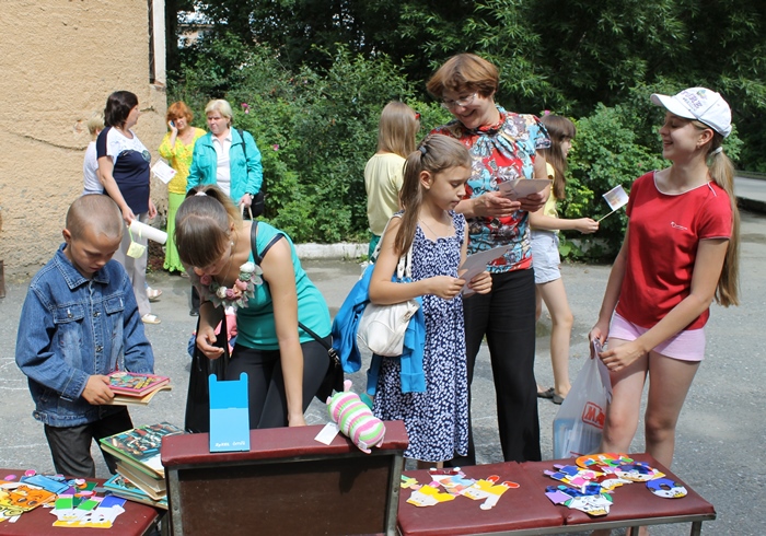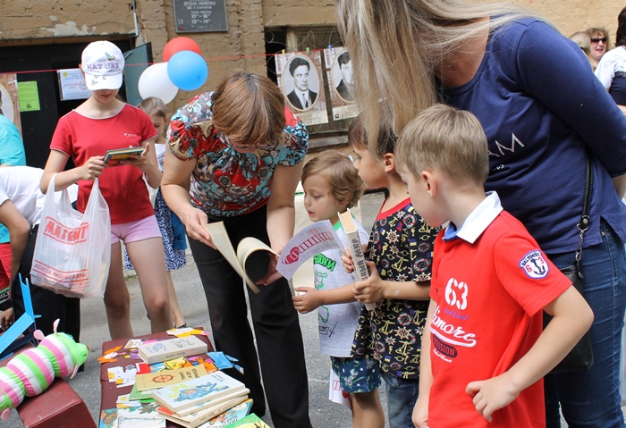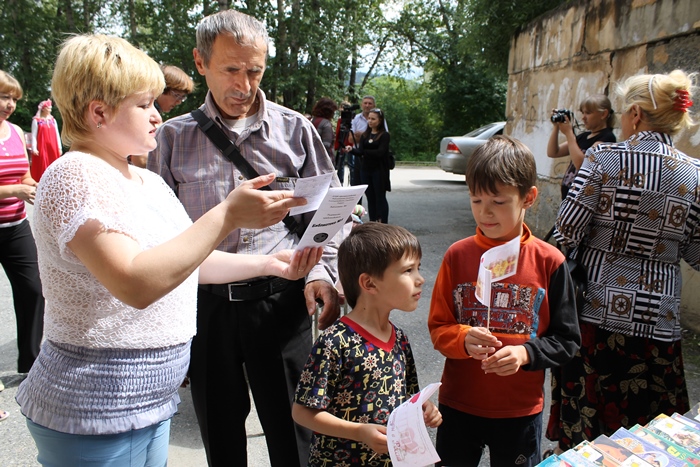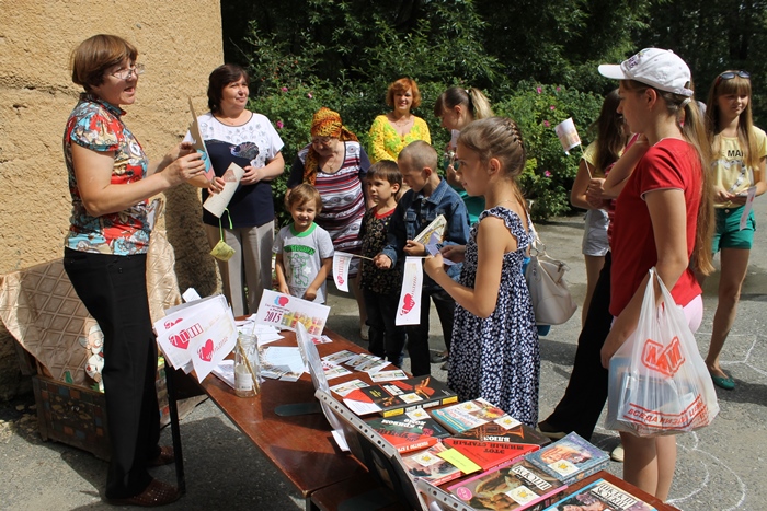 15 июля на площадке возле Центральной детской библиотеки состоялась акция «Читай, другим передавай!». Мероприятие организовано в рамках межбиблиотечной акции «Буккроссинг». Для больших и маленьких жителей района библиотекари устроили книжный развал, фотогалерею портретов писателей, создали свиток «Похвальное слово литературе», спрятали загадки и викторины в волшебном сундуке, оформили «буквенную» тропинку. Всем нашлось дело по душе! Пока взрослые выбирали книги, малыши на буквы алфавита вспоминали литературных героев, отвечали на вопросы викторин. Для многих стали неожиданными вопросы по литературным улицам нашего города. Но самое главное - каждый во время акции получил книгу, флажок к году литературы, рекламу библиотечных услуг. В свитке «Похвальное слово литературе» появились строки, которые иллюстрируют желание читать: «Только литература, только книга заставляют человека быть человеком, и никакой интернет не заменит общение с книгой и библиотекарем». Участниками акции стали 62 человека.