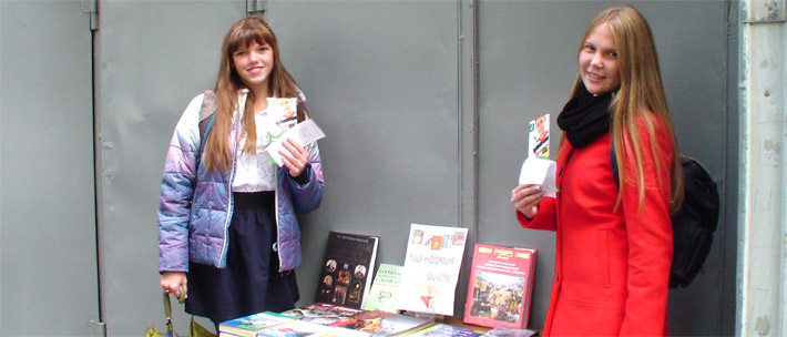 На улице возле центрального входа в библиотеку, библиотекари представили энциклопедии, справочники, электронные диски в помощь учебному процессу. Каждый участник уличной акции «Наша информация – ваш успех» получил закладку с перечнем библиотечных услуг.