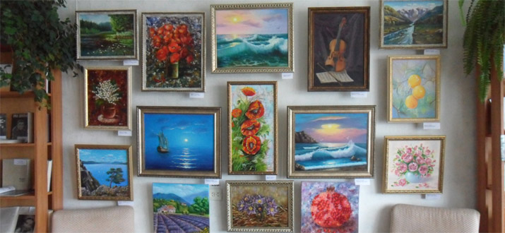 Вниманию зрителей представлены пейзажи родного края и европейских стран, морские пейзажи, а также натюрморты.