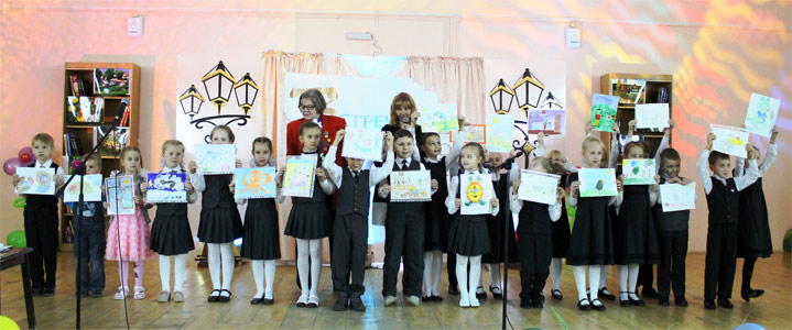 В книге «А на небе - выходной» Светлана Львовна не только автор стихов, но и иллюстратор к каждому стихотворению. Ребята – исполнители стихов, подготовили для С. Соложенкиной подарки. Каждый нарисовал иллюстрацию к выученному стихотворению, устроив на сцене вернисаж, а затем подарили рисунки автору поэтического сборника.
