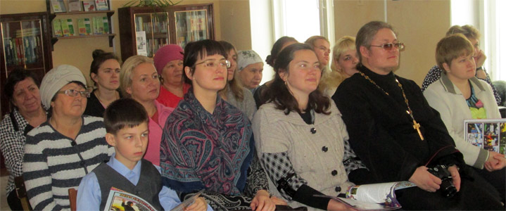 8 ноября в библиотеке № 1 состоялась встреча с редактором детского православного познавательного журнала «Колокольчик» Остапом Михайловичем Давыдовым. На встрече присутствовали иерей Сергий, священник храма праведного Симеона Верхотурского, учителя, дети, родители, т.к. журнал рассчитан на семейное чтение. Остап Михайлович подарил всем присутствующим ноябрьский номер журнала, а затем показал презентацию «Колокольчика», рассказав о том, что в журнале печатаются даже стихи и рассказы известных авторов, как Нина Пикулева и т.д. Учителя задали много вопросов Остапу Михайловичу о том, что читать молодым. Редактор журнала посоветовал книги современных авторов и авторов прошлых лет, провел сравнение между ними. Порекомендовал конкретные книги для чтения подросткам. Библиотеке Остап Михайлович подарил журналы с автографом.