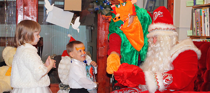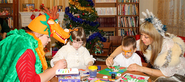 Ребята от пяти лет могут пообщаться с Дедушкой Морозом, поиграть, рассказать на ушко о своих мечтах. Специалисты детского сектора (О.Ю. Помыткина, Анфиса Ганиева, Анна Фефелова, Ксения Ашуркова, Галина Михайловна Кривошеева, Юлия Прокопенко) и отдела маркетинга (зав. отделом маркетинга ЦГБ Марина Владимировна Кудреватых) устраивают настоящую фотосессию для ребят, показывают мастер – классы по изготовлению новогодних игрушек, создают новогодний арт - грим на личике. В это время родители могут заняться своими делами, купить подарки или обменять книги в других отделах библиотеки. Это лучший выбор родителей и подарок внукам от старшего поколения в предновогодние праздники!