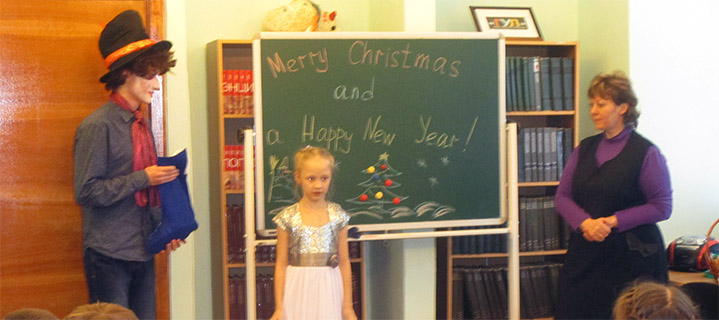 24 декабря в читальном зале Центральной библиотеки для учащихся Английского центра состоялся праздник, посвященный Рождеству Христову. В увлекательной форме ребята узнали об истории возникновения праздника, традициях празднования его в Англии, ответили на вопросы познавательной викторины «Английское Рождество», участвовали в конкурсе на лучшую рождественскую открытку. На празднике у ребят побывал герой сказки Л. Кэрролла « Алиса в стране чудес» Безумный шляпник, который вел свою часть праздника на английском языке. Мероприятие сопровождалось показом слайдового фильма.