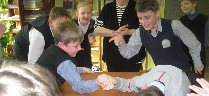 На вопрос ведущих: «Желают ли они в будущем стать солдатами?», все дети хором ответили - «Да!» Чтобы получить звание солдата ребята прошли испытания: на смекалку, ловкость, быстроту, силу. В конце программы библиотекари посвятили ребят в солдаты и подарили флажки (триколор).