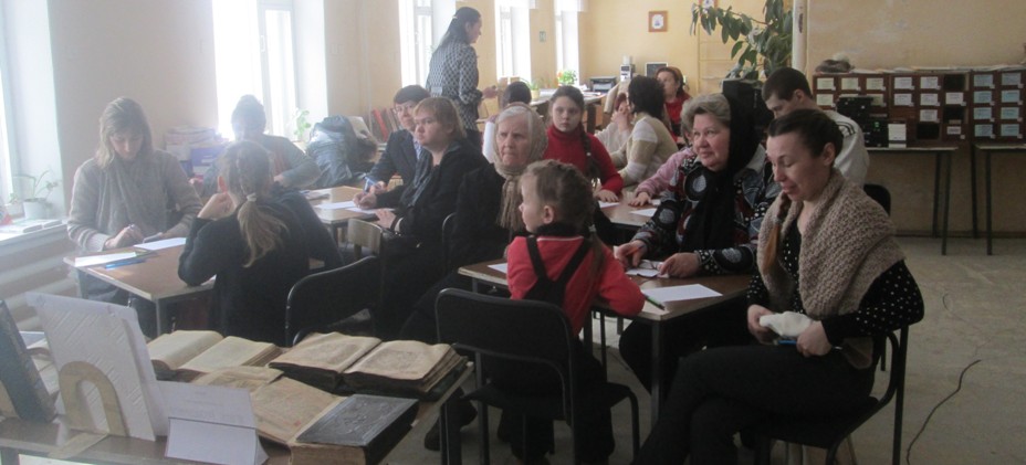 Самые старинные фолианты для ознакомления читателей попали в библиотеку из музея Свято – Симеоновского храма в г. Златоусте. Собравшиеся, узнали много интересного и поучительного из жизни и творчества великого русского писателя И.С. Шмелева, о котором рассказала библиотекарь читального зала Турок Марина Сергеевна. Вместе с ведущими гости окунулись в мир героев романов и повестей, прочли отрывки из «Лета Господня». Написали диктант, проверили знания грамматики русского языка. Дети приняли участие в познавательной викторине. Незаметно пролетел час. Кроме доброго и радостного настроения каждый получил в дар карманный календарик, как знак скорой встречи и крепкой дружбы с книгой.
