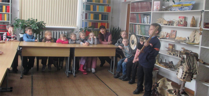 Зав. библиотекой Смирнова Н.Т. рассказала о том, что такие интересные встречи проходят в библиотеках ежегодно в дни весенних каникул, начиная с 1944 года. Пригласила взять книги и стать читателем библиотеки.