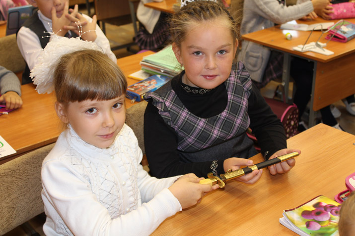 Интерес вызвал рассказ о златоустовском оружейном заводе, который «был самым лучшим в нашей стране», поскольку мастера там работали самые лучшие и умелые, о том, что у каждого мастера было особенное клеймо, которое он ставили на клинках. Учащиеся узнали о самом талантливых оружейниках тех времен – Иване Бушуеве и его брате Ефиме. Ребята узнали и о том, почему для нашего герба, который считают одним из самых выразительных и красивых, выбран золотой крылатый конь, летящий в алом поле. Библиотекари показали настоящий морской кортик (современный), сделанный на златоустовской Оружейной фабрике, отметившей в 2015 году юбилей в 200 лет.