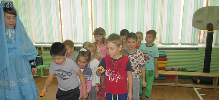 Более подробнее познакомились с традициями русского народа. Представитель русской нации (Лабзина Т.Ф.) в русском национальном костюме рассказала ребятам о мужском и женском костюмах русского народа, о народной кухне, музыкальных инструментах, а также вспомнила вместе с детьми русские праздники. Под веселую музыку поиграли в русскую народную игру «Огородники».