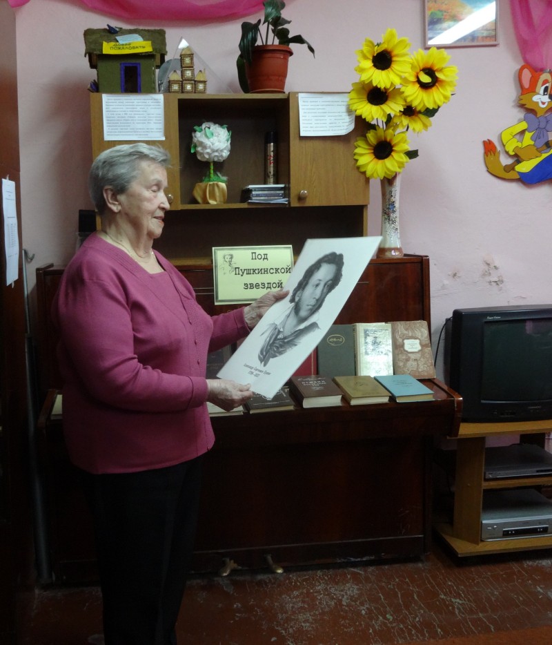 1 марта в библиотеке № 22 состоялось заседание клуба любителей поэзии «Сударушка». Поэтический час, посвящён 180-летию со дня смерти А.С. Пушкина «Слава поэзии, слава России». Руфина Владиславовна Александрова увлечённо рассказала о своём любимом поэте – А.С. Пушкине, о его семье (жене и детях), о творчестве, о последних днях жизни, о дуэли с Дантесом. Татьяна Тимофеевна Шарамко, Валентина Ивановна Мильнер и другие участники встречи прочитали стихи А.С. Пушкина. Мероприятие закончилось чаепитием.