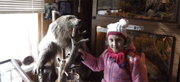 Во – первых, замечательно пообщались с Мариной Середой, которая провела экскурсию по очень занимательному музею природы. И зуб мамонта трогали, и легенды про Таганай слушали, и, не выходя из маленьких залов музея «прогулялись» по всему национальному парку. А как было интересно рассматривать и угадывать следы животных! Ребятишки след увидят, кричат сразу, что « это медведь прошел!»