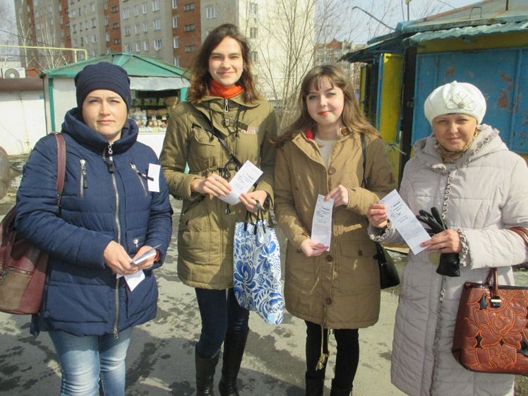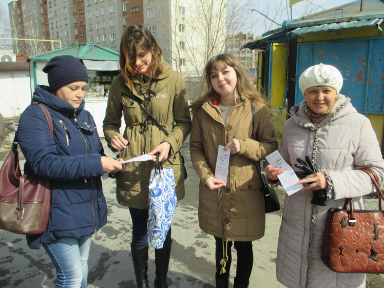 На улице сотрудники библиотеки Ганиева А.З., Слепова О.А., Лабзина Т.Ф. провели флэш - моб «Депрессия». Прохожим на улице задавался вопрос «Что такое депрессия?». Ответы звучали разные: «Мы не знаем, что это такое», «Никогда не испытывали на себе», «Депрессия – серьезная болезнь». После опроса и беседы всем вручалась закладка «7 апреля – Всемирный день здоровья», где представлена информация о Дне здоровья, о депрессии, как заболевании, и советы, как избавиться от этого недуга. Люди благодарили библиотекарей за полученную информацию, за закладку и с улыбкой говорили «Депрессии – НЕТ!».