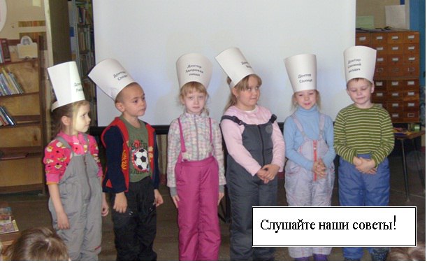 7 апреля малыши - читатели пришли на прием к «библиотечным» докторам в Центральную городскую библиотеку. Ведь Всемирный день здоровья! А в библиотеке замечательно лечат. От грусти дадут веселую историю В. Драгунского или Н. Носова. От диагноза «не хочу кашу есть! « (есть такой диагноз), лучше всего поможет сказка И. Дементьева « Про Машу и манную кашу», от боязни докторов лучше всего почитать книгу С.Прокофьевой « Приключения желтого чемоданчика». Читателям было очень интересно на «приеме»! Витаминный чай с загадками «выпили» , для обеда выбрали самые полезные продукты, выучили новый комплекс упражнений для утренней зарядки, внимательно прослушали «вредные» советы», чтобы не вредить своему здоровью. Даже сами докторами побывали! Очень правильные советы давали! А доктор Айболит прислал посылку с медальками «Будьте здоровы!»