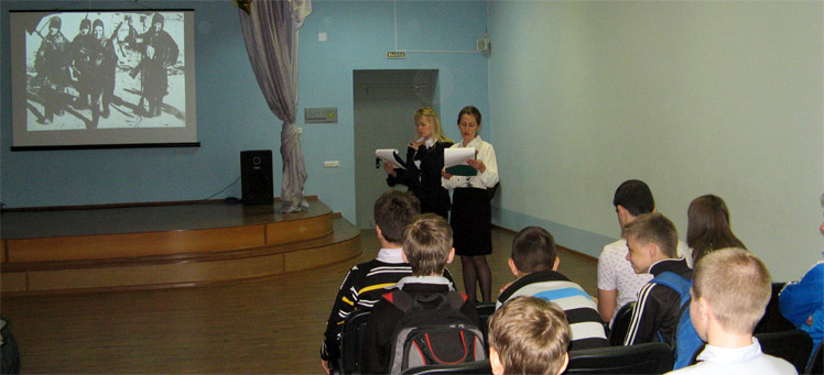 Для учащихся 7-х классов МАОУ СОШ №1 и студентов ГБПОУ ЗлатИК им. П.П. Аносова прочитаны вслух лучшие образцы художественной литературы, посвященные событиям Сталинградской битвы 1942-1943 гг. С большим вниманием подростки слушали отрывки из книг Анатолия Алексина «Человек с красным галстуком», Виктора Некрасова «В окопах Сталинграда» и другие. Данное мероприятие является еще одним этапом в патриотическом воспитании подрастающего поколения.
