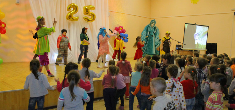 Праздник начался с интриги. Оказывается, авторы программы- Наталья Георгиевна Ванина, Надежда Федоровна Глыбовская, Татьяна Викторовна Деревянных, получили письма о том, что программа «Лето, книга, я-друзья!»закрывается, а празднование 25-летия Ерошки отменяется! Как оказалось, Старуха Шапокляк пыталась испортить всем праздничное настроение, а ее Лариска съела веселый Ерошкин сценарий! На помощь Ерошке и ребятам пришли лучшие друзья -литературные герои: Мальвина, Буратино, Карлсон, Фрекен Бок, Пеппи и даже американский книжный червячок Будди! Дети с удовольствием участвовали в их интеллектуальных развлечениях, конкурсах, подвижных играх; танцевали, пели вместе с героями представления. Ребята вспомнили флаг, герб, Книгу почета, песню программы «Лето, книга, я- друзья!». Поздравить Ерошку пришли не только дети, но и родители, педагоги. Всем было весело и интересно, чувствовалась особая атмосфера праздника. Радостного настроения от встречи ерошкиных друзей, безусловно, добавили и выступления творческих коллективов: хореографического ансамбля «Элегия» (руководитель Л. Валова), ансамбля эстрадного танца «Фруктайм» (руководитель В.Шило),солистами из ДМШ №2 Д. Бурзаевым, М. Валавиным, Т. Косматовой. Благодаря стороннику партии «Единая Россия», ИП Д.А.Косякину дети получили в подарок апельсины.