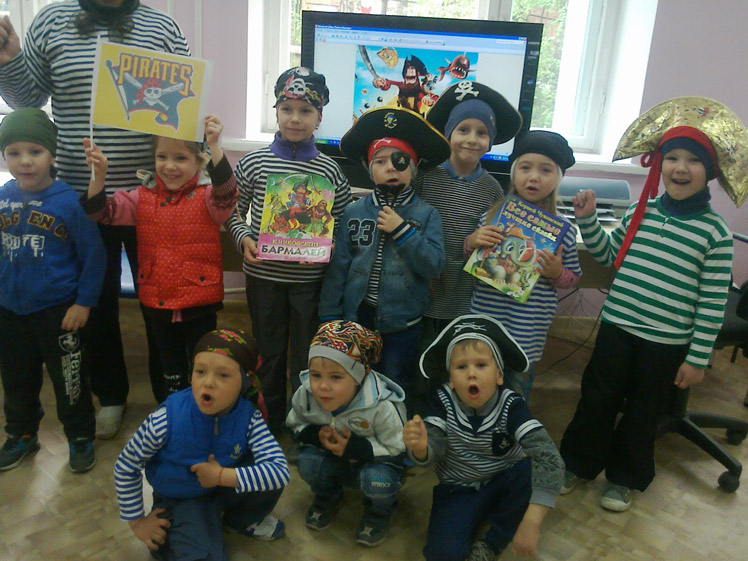 С Бармалеем и пиратами дети с азартом выполняли сложные задания в поисках сундука с сокровищами: спасали товарищей от пираний, выбирали самого меткого пирата, перетягивали канат, принимали участие в конкурсах «Якорь» и «Ловишка», отвечали на вопросы «Пиратской» викторины. Дети заинтересованно бегали по библиотечным лабиринтам и переулкам в поисках главного приза.