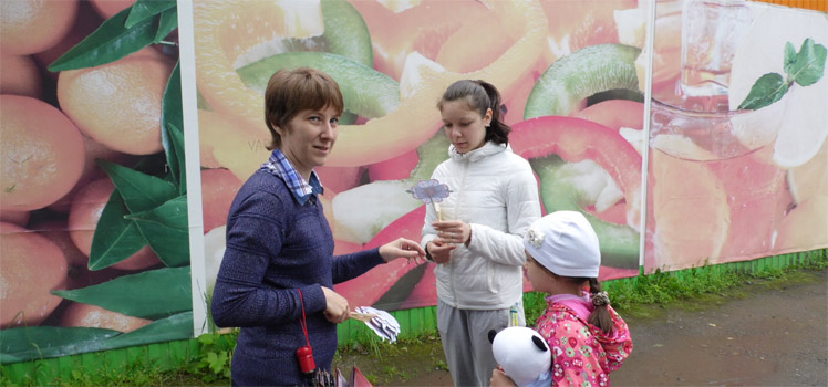В преддверии Дня семьи, любви и верности сотрудники библиотеки семейного чтения №12 провели либмоб «Я подарю тебе ромашку…» для жителей микрорайона. Каждая ромашка с пожеланиями – радости, любви, счастья, настроения дарилась утренним жителям нашего города от Петра и Февронии.