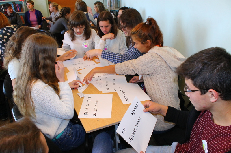 Участникам мероприятия было предложено посоревноваться: в скоростном чтении статьи Л. Толстого «Пора опомниться!», составить пословицы и поговорки о трезвости, определить авторство мудрых мыслей о вреде алкоголя и трезвом образе жизни, выяснить, что является правдой или ложью об алкоголе, ответить на вопросы викторины. Капитаны команд проявили свои творческие способности, читая стихотворение Р. Бернса с разными интонациями.