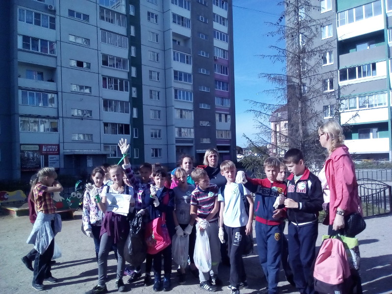 Первая площадка, которую очистили пятиклассники, называлась «Чистый дворик». Здесь среди мусора и бумаги ребята находили коробочки и баночки с зелёной символикой, в которых были запрятаны вопросы по экологии. В помощь школьникам были предложены книги, которые несли в рюкзаке библиотекари детской библиотеки №13.