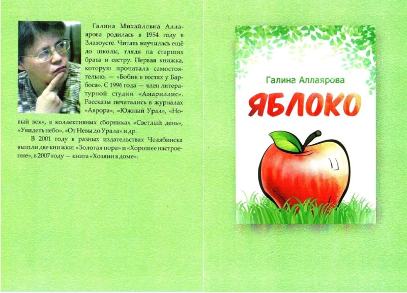 Это детский прозаик из нашего города, которая очень тонко чувствует детей, настраивается с ними на одну волну и переносит житейские истории на бумагу. В зале были дети и взрослые, потому что рассказы Галины Алляровой – это семейное чтение, ее тексты добрые, смешные и искренние. Во время презентации некоторые из них были прочитаны вслух. Сюрпризом для автора стали выступления юных читателей. Музыкальные подарки приготовили ученики детской музыкальной школы № 2 Айнур Гибадуллин (концертмейстер Дмитрий Немцев, преподаватель Максим Валавин), Таня Косматова и Ксения Мухамадеева (преподаватель Елена Овчинникова). Дети из социального реабилитационного центра для несовершеннолетних и Русской православной школы, активные участники мероприятия, при поддержке библиотекаря Натальи Мастепако показали театр - экспромт – чтение по ролям сказки «Хорошее настроение». А настроение в зале было чудесное! Автор сценария и ведущая праздника Наталья Красильникова задавала детям и взрослым загадки, навеянные книгой Галины Аллаяровой, поддерживала живое общение юных читателей с автором. Образ героини встречи дополнило видео – отрывок из вечера - спектакля литературно - театральной группы «МиЛиТ» «Легенды об Амариллисе» и видео - привет из г. Челябинск от руководителей семинаров Школы литературного мастерства «ИстокПлюс» Павла Карякина и Виктории Ивановой. Они коротко и емко рассказали о достоинствах прозы Галины Аллаяровой, назвав ее рассказы исключительными и необыкновенными. Ключевой рассказ книги заканчивается словами: «Всем досталось по кусочку вкусного, ароматного и очень сладкого яблока». Так, во время презентации всем досталось по кусочку искренности и доброты от Галины Аллаяровой.