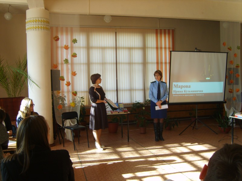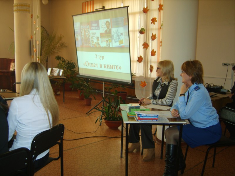 12 октября в библиотеке № 5 «Исток» прошла ситуационная игра по правовой компетентности старшеклассников «Консультирует юрист». Библиотекари ставили перед собой несколько задач: поговорить о важности осмысленного отношения к закону, сделать акценты на различные отрасли права, представить научно-популярные книги по юриспруденции. Серьезную профессиональную поддержку в подготовке и проведении игры оказали заместитель прокурора г. Златоуста Ирина Кузьминична Марова и преподаватель обществознания МАОУ СОШ № 2 Ирина Николаевна Анисимова.