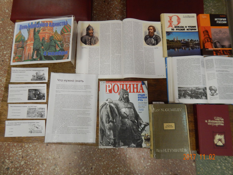 Читателям были представлены книги по истории России, в которых рассказывалось о событиях конца XVI начала XVII веков. Участники акции отвечали на вопросы викторины. Юные участники узнали о возникновении этого праздника в России, взрослым читателям библиотекари предоставили возможность вспомнить историю России.