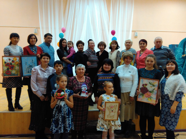 Роза Гарифьянова принесла на выставку картины из цветной шерсти, атласных ленточек, и верёвки и только начала представлять свои работы тут же посыпались вопросы. Ну, чтобы не быть голословным Роза апа принесла заготовки и показала мастер – класс – молодец!