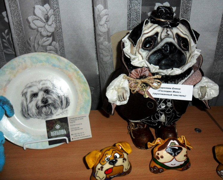 У стендов с декупажем, лично я, провела долгое время. Какая же здесь красота! Рукодельницы молодцы! Одними из главных героев, которой являются куклы. Куклы, сделанные руками Златоустовских мастериц, очень разные и невероятно красивые. На выставке можно увидеть кукол, выполненных в самых разнообразных техниках, их самых различных материалов (пластика, грунтованный текстиль, текстиль, пряжа). Но думаю лучше один раз увидеть, чем сто раз слушать. Вот веселая семейка «Господина Мопса» выполнена их грунтованного текстиля и, на мой взгляд, они одни из самых ярких участников выставки. У них еще есть и мама Мопс, которую еще делает мастерица Елена Королева. Вообще большая часть представленных кукол, выполнены из текстиля, видимо это обусловлено тем, что ткань наиболее доступный материал и работать с ним достаточно легко и интересно. Еще очень популярны в последнее время куклы, известные как тыквоголовки. Они текстильные, по сути своей примитивки, но очень милые и добрые. Вот очаровательная кукляшка «Горошек» Натальи Пономаревой. Заслуживает внимание её же композиция «Фотоателье Дунаевъ».