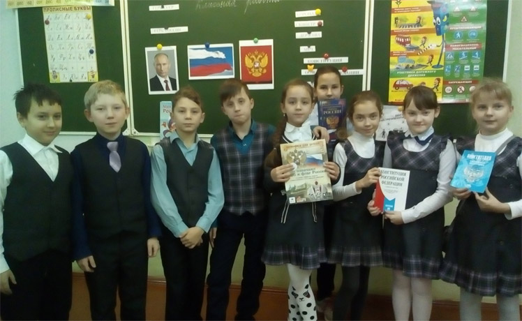 В игровой форме ребята познакомились с главным законом нашей жизни - Конституцией. Игра состояла из трех туров: «Сказочный» (ребята разбирали права сказочных героев, которые были нарушены); в туре «Логические цепочки» - отбирали слова, которые не связаны с символами нашей страны; в «Словарном» туре - из слова Конституция игрокам предстояло составить максимальное количество новых слов. В ходе игры школьники узнали много нового и интересного о правах и обязанностях. Закрепили свои знания кроссвордом при отгадывании, которого вышло словосочетание «Россия и все мы – Россияне».