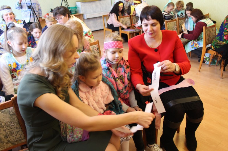 В перерывах между конкурсными заданиями участники семейного клуба «Вместе» учились играть в русские народные игры»: «Хоровод с воротцами», «Кольцо» и «Без пары».