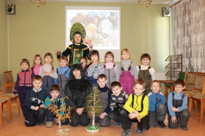 1 февраля группа детей МДОУ № 71 посетила Центральную городскую библиотеку, где их гостеприимно встретила Хозяйка медной горы. Она рассказала о красивой природе нашего города. Дети вспоминали о Златоустовских горах – Таганае, Уреньге, Откликном гребне, Круглице, Косотуре. Помогал им в этом житель леса – Волчонок. Ребятам нужно было пройти испытания, чтобы увидеть сокровища Уральских гор.