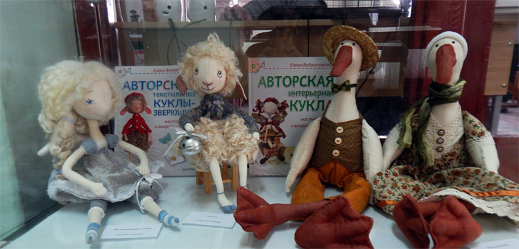 6 февраля в фойе второго этажа работниками СКО ЦГБ оформлена необычная выставка: у нее сразу три автора. Здесь представлены текстильные интерьерные куклы, изготовленные по методике Елены Войнатовской - кукольного мастера из Челябинска, чей авторский блог www.nkale.ru - настоящий клуб для всех любителей тряпичной куклы. Елена проводит мастер-классы по всей стране, у нее много последователей и среди них - мама и дочь Кириенко.