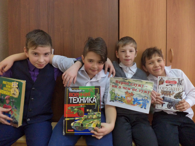 21 февраля библиотекарь детского сектора ЦГБ Фефелова Анна Викторовна подготовила для ребят четвертого класса конкурсную программу «Аты-баты, шли солдаты!», посвященную Дню защитника Отечества. Ребята познакомились с интересными фактами из истории праздника, разгадывали загадки, отвечали на вопросы викторины, участвовали в конкурсах на меткость, ловкость и внимание, полистали книги военной тематики. Особым вниманием «мужской» половины класса была удостоена «Настольная книга будущего командира».