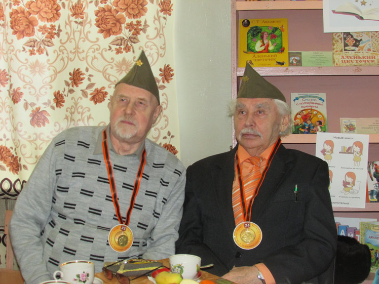 Во второй части мероприятия участницы клуба и библиотекари песнями и стихами поздравили мужчин с наступающим Днём Защитника Отечества, вручили им подарки и сделали фото на память.