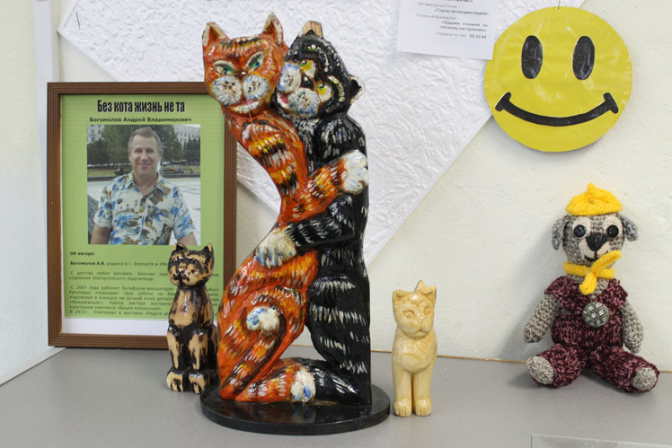 1 марта, во Всемирный день кошек в Секторе комплексного обслуживания ЦГБ открылась необычная выставка. Автор её Богомолов Андрей Владимирович бутафор - декоратор театра «Омнибус».