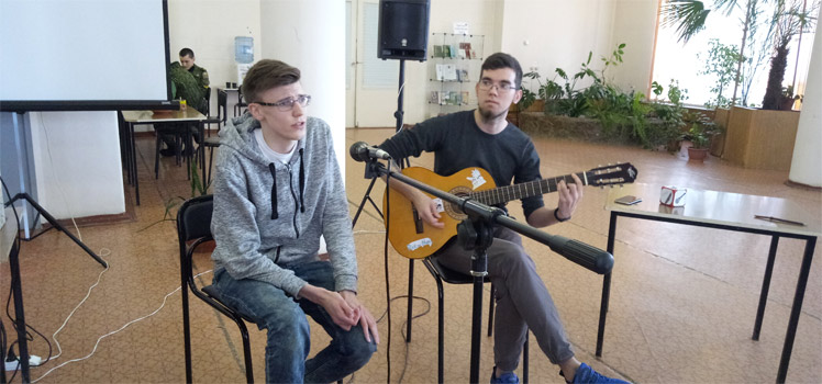 Как и подобает на квартирнике, в этот день в библиотеке была создана свободная для общения и творчества атмосфера. Участниками стали старшеклассники, кадеты и студенты. В свободной форме собравшиеся делились своими талантами и творчеством. Своими авторскими стихами поделились Габова Ирина и Гордеева Дарья. Красильников Михаил, Левин Андрей и Половинкин Илья пели песни под гитару. Своё мастерство в художественном чтении стихов продемонстрировали Айтуганов Ярорслав, Зырянова Анастасия, Мымрин Александр и Половинкин Илья. Игрой на фортепьяно порадовала Жидких Екатерина. Салимова Эльмира удивила своими графическими работами и искусно выполненными плетеными фенечками.