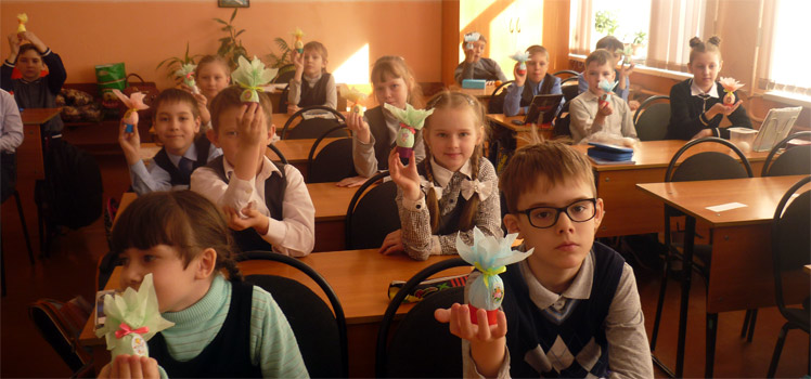 Перед изготовлением праздничного пасхального яйца сотрудники Любовь Журавлёва и Анна Мымрина рассказали из истории праздника. Православные празднуют Пасху уже более двух тысяч лет. Пасха — «праздник праздников», прославляющий победу добра над злом, жизни над смертью, света над тьмой. В этот день принято печь пасхальные куличи, делать творожную пасху и красить яйца. Яйцо — это символ жизни, её возрождения. Дети поделились историями празднования Пасхи в семье. Софико рассказала, что в этот светлый день у них вспоминают родственников и достают их портреты. А Коля, поделился тем, какие вкусные куличи печёт прабабушка. Каждому хотелось высказаться. Но впереди предстояла работа по украшению пасхальных яиц.