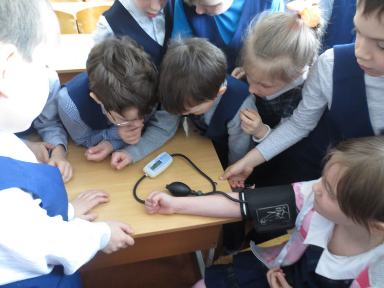 Проведя опыты, ребята научились определять у себя пульс, прослушивали друг у друга сердцебиение с помощью стетофонендоскопа до нагрузки и после.
